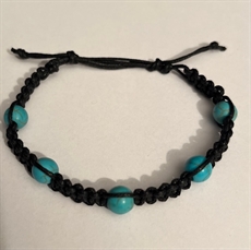 Armband av vaxad bumulls band och pärlor av Ädelsten/kristall. reglerbart .cirka 20cm.Amazonit.