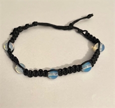 Armband av vaxad bumulls band och pärlor av Ädelsten/kristall. reglerbart .cirka 20cm.Kristall