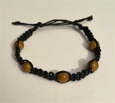 Armband av vaxad bumulls band och pärlor av Ädelsten/kristall. reglerbart .cirka 20cm.Obsidan