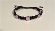 Armband av vaxad bumulls band och pärlor av Ädelsten/kristall. reglerbart .cirka 20cm.Rosa kvarts