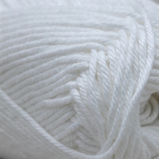 Bomull 100%. 4/4 Soft. 50gram = 85meter. stickor nr 4-4,5 virknål 3-3,5. 19m x28 varv = 10 x10 cm .vit.
