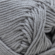 Bomull 100%. 4/4 Soft. 50gram = 85meter. stickor nr 4-4,5 virknål 3-3,5. 19m x28 varv = 10 x10 cm .Silvergrå.