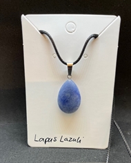 Halsband med kristall/ädelstens droppe med vaxad bomullshalsband. Nickelfritt.cirka 50cm.Lapus lazuli