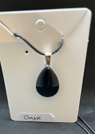 Halsband med kristall/ädelstens droppe med vaxad bomullshalsband. Nickelfritt.cirka 50cm.Onyx
