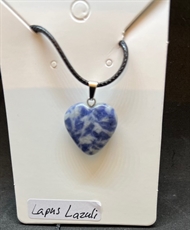 Halsband med kristall/ädelstens hjärta 20x20mm, med vaxad bomullshalsband. Nickelfritt.cirka 50cm.Lapus Lazuli