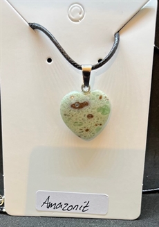 Halsband med kristall/ädelstenshjärta 20x20mm med vaxad bomullshalsband. Nickelfritt.cirka 50cm.Amazonit