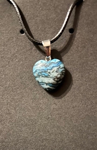 Halsband med kristall/ädelstenshjärta 16x16mm med vaxad bomullshalsband. Nickelfritt.cirka 50cm.Apatit