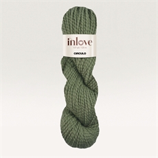 In Love 100% Bomull från Brasilien. 100gram = 125 meter. stickor nr 6. 16 maskor x 18 varv= 10cm. Mossgrön