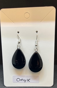 Kristallörhänge .Droppe med nickelfri och blyfri metallkrok.storlek på sten cirka 15x23mm.Onyx